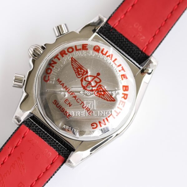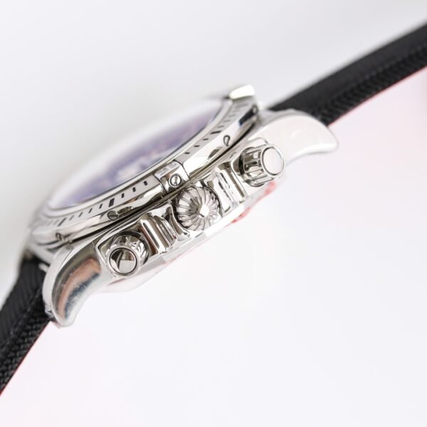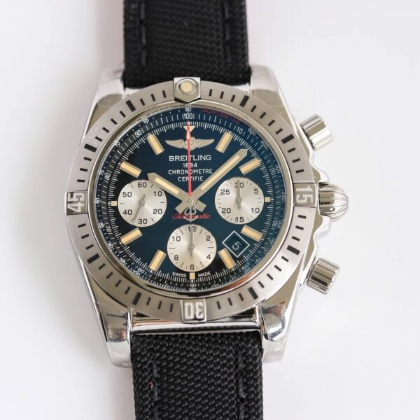 Breitling Chronomat 41 Airborne Super Clone is a 41mm stainless steel watch with seconds marking on the rotatable bezel. The leather-lined fabric strap offers a comfortable fit right out of the box.