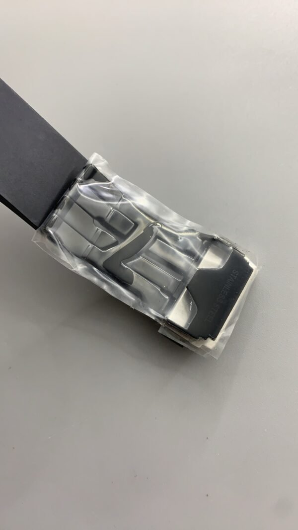 - Strap: Black rubber strap with stainless steel deployment buckle