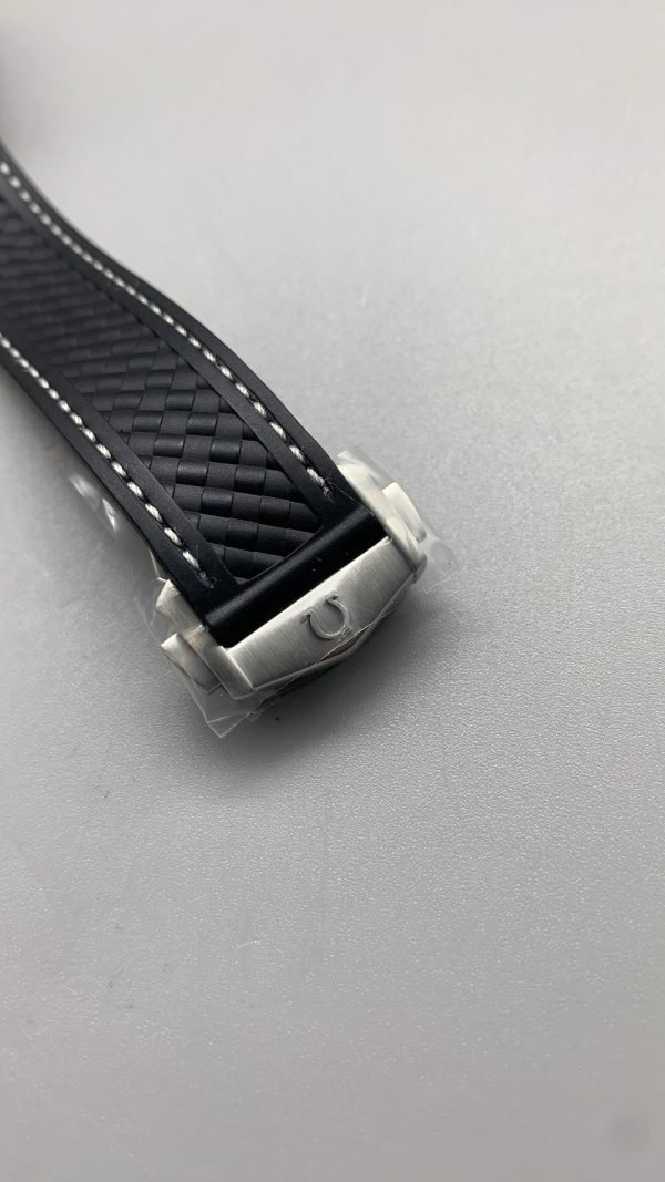 Omega Seamaster Super Clone has a black structured strap with a beautiful titanium clasp. The watch runs on a Swiss self-winding movement offering superior precision.